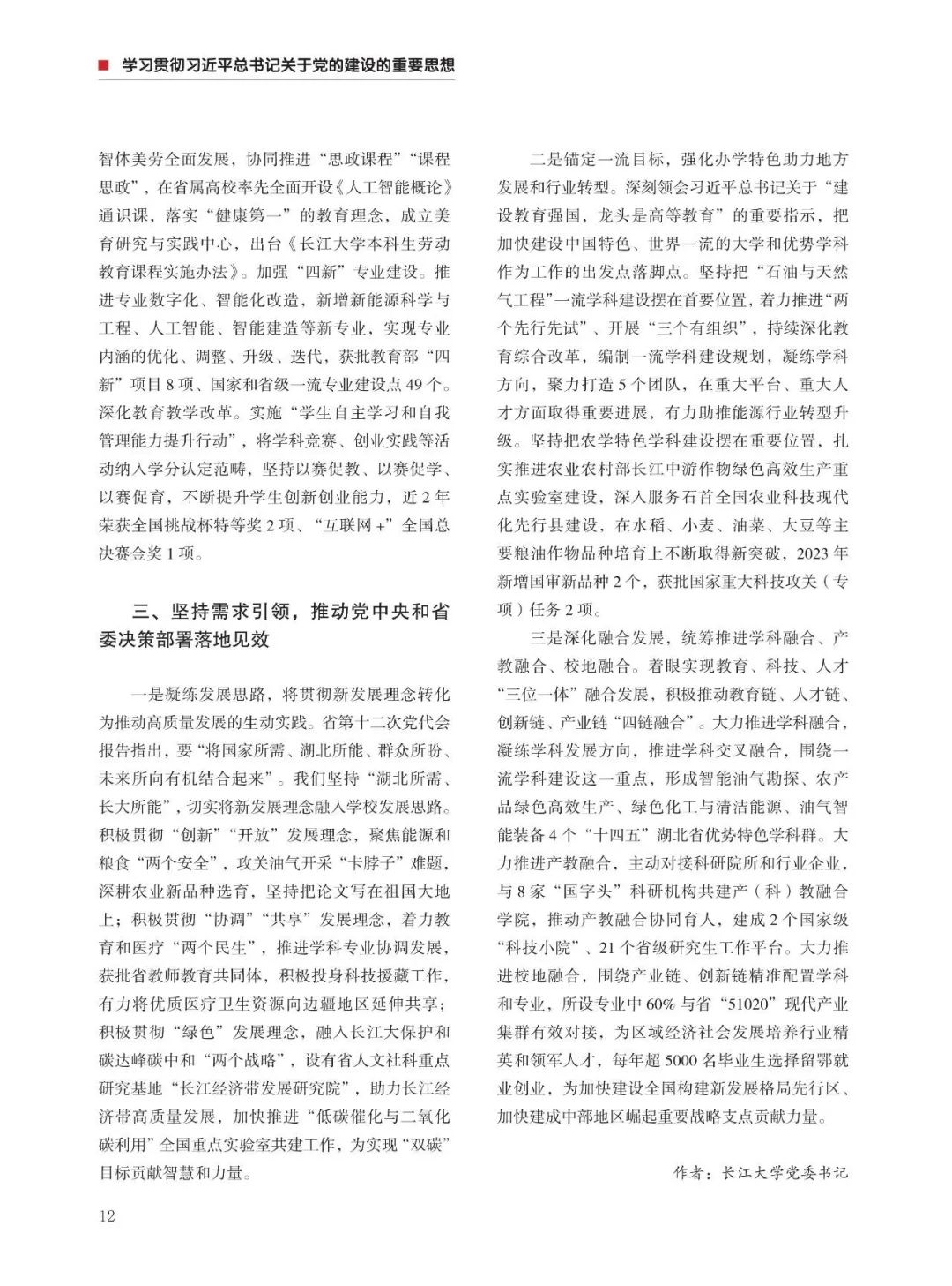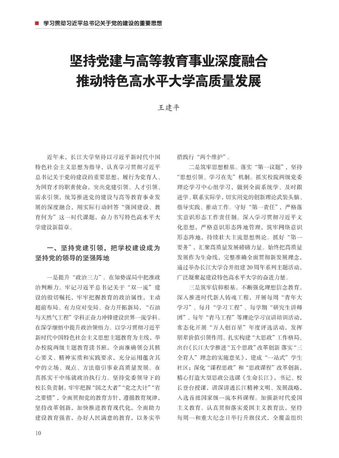 近日,由中共湖北省委组织部、中共湖北省委党的建设工作领导小组办公室主办的《湖北党建》(2024年第1期)刊发了我校党委书记王建平的理论文章:《坚持党建与高等教育事业深度融合 推动特色高水平大学高质量发展》。